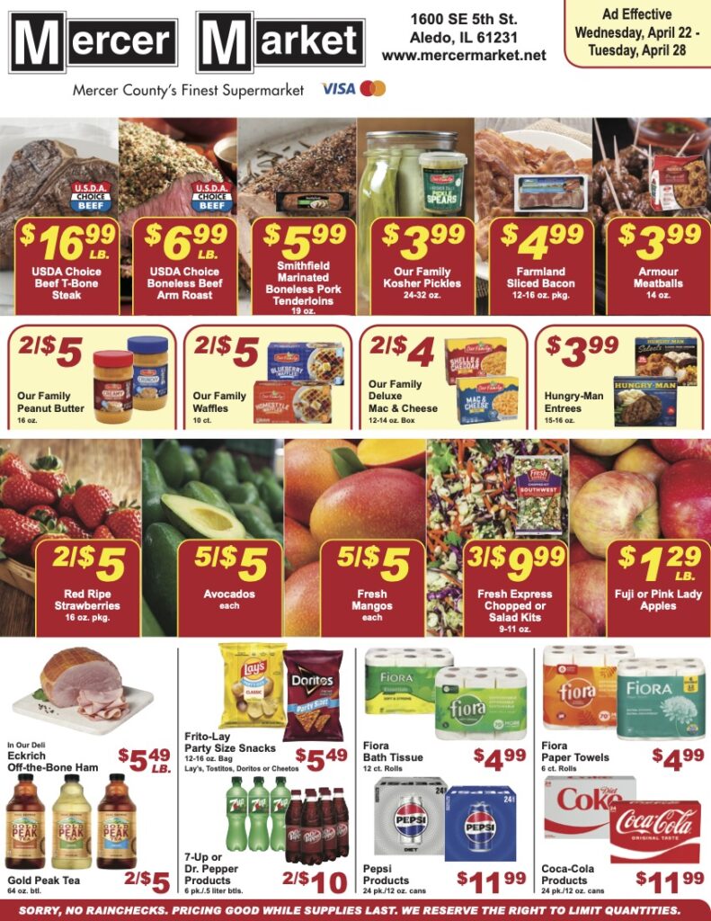 At Mercer Market, you’ll always find multiple ways to save — and stretch your family’s food dollar even further. Check out our easy-to-use electronic coupons and our current promotional prices.